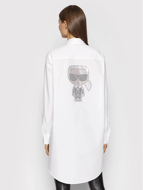 KARL LAGERFELD Γυναίκες Casual Πουκάμισα Πουκάμισο Ikonik Rhinstone 216W1604 Λευκό Oversize Λευκό