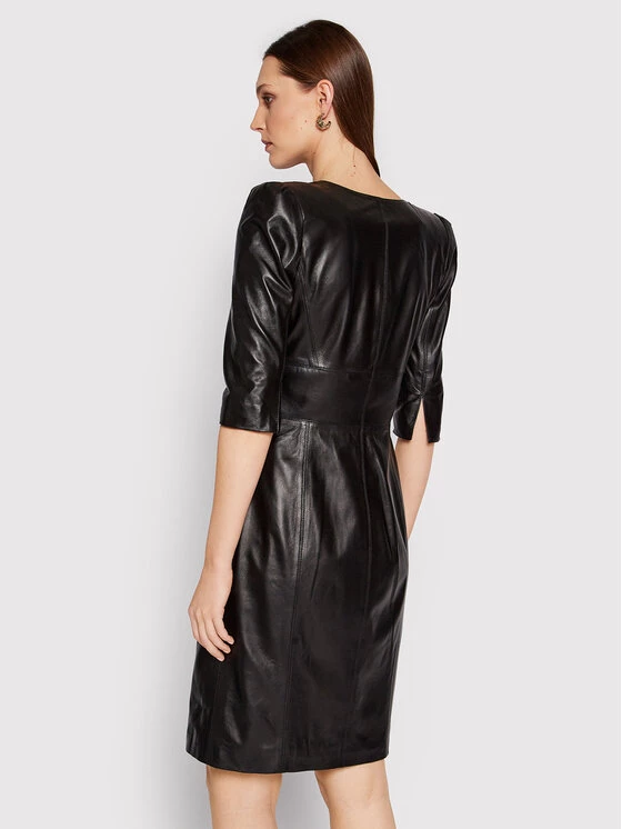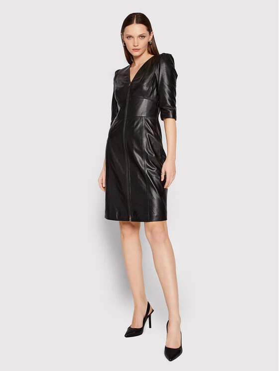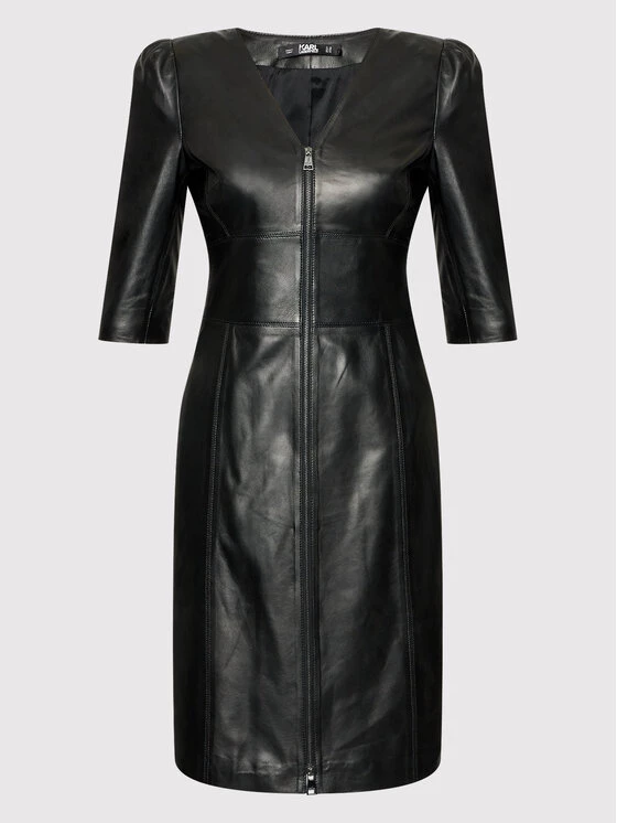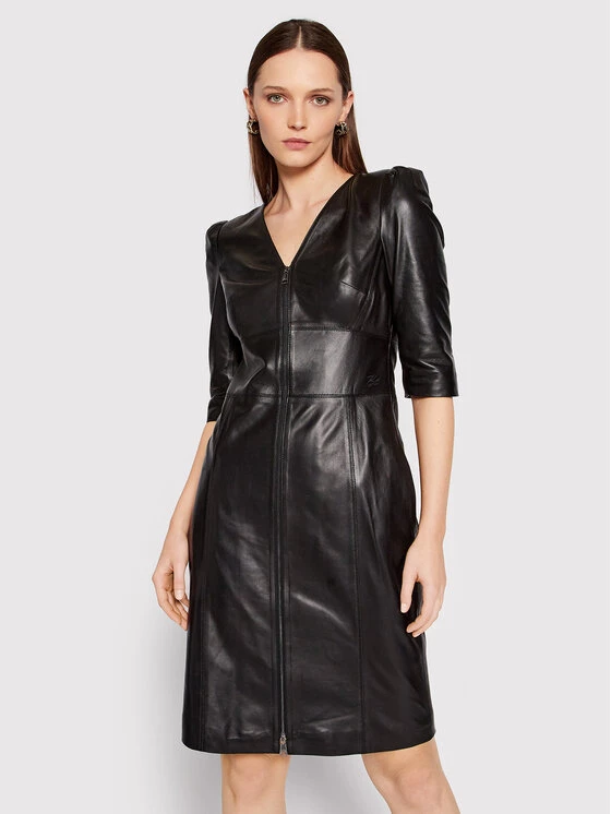 KARL LAGERFELD Γυναίκες Δερμάτινα Φορέματα Φόρεμα δερμάτινο 220W1902 Μαύρο Slim Fit Μαύρο