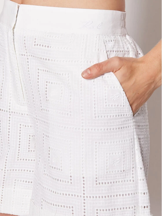 KARL LAGERFELD Γυναίκες Υφασμάτινα Σορτς Σορτς υφασμάτινο 221W1004 Λευκό Regular Fit Λευκό