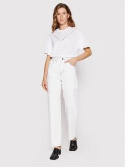 KARL LAGERFELD Γυναίκες Καθημερινά Φορέματα Φόρεμα καθημερινό Fabric Mix Sweat 211W1360 Λευκό Regular Fit Λευκό