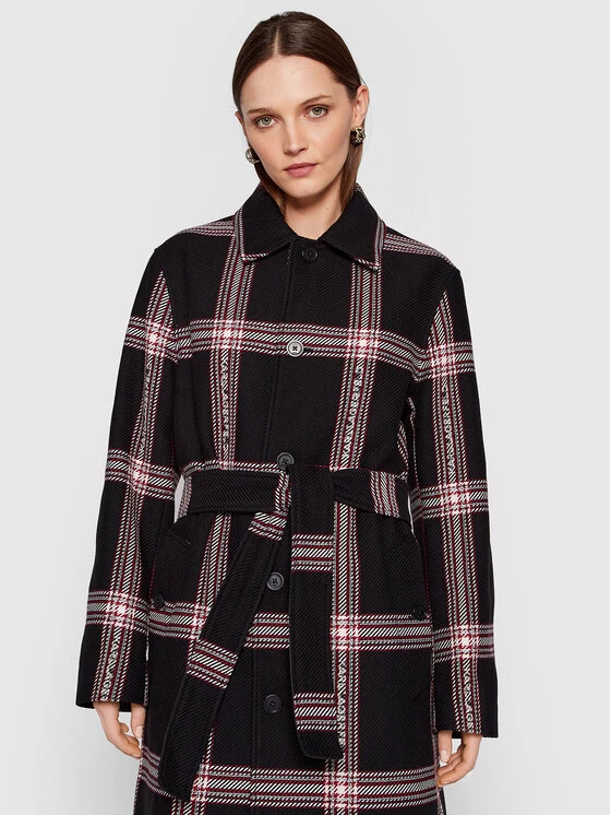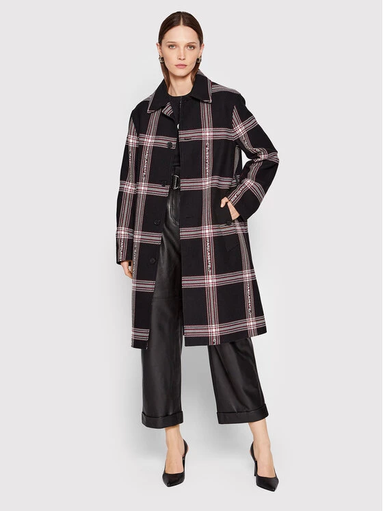KARL LAGERFELD Γυναίκες Μεταβατικά Παλτά Παλτό μεταβατικό Logo Check 220W1582 Μαύρο Relaxed Fit Μαύρο