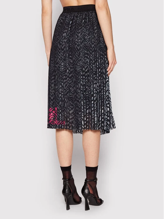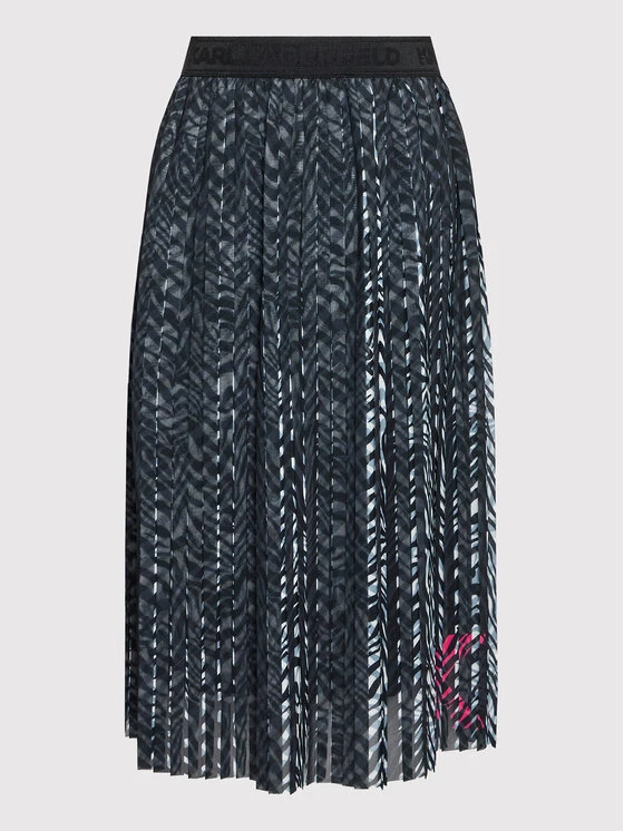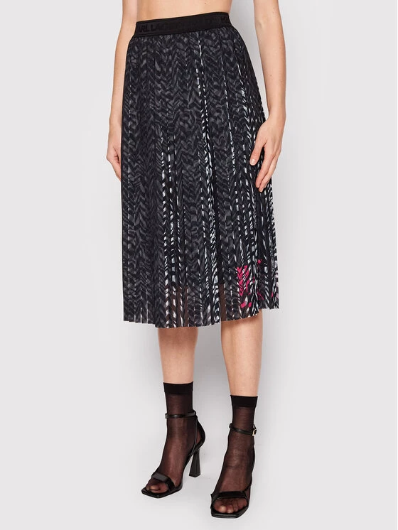 KARL LAGERFELD Γυναίκες Midi Πλισέ φούστα Zebra 221W1200 Μαύρο Regular Fit Μαύρο