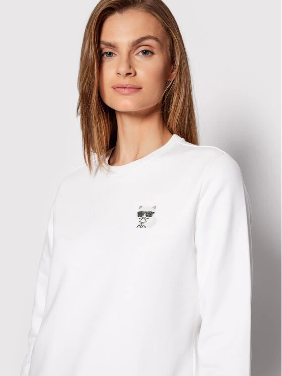 KARL LAGERFELD Γυναίκες Μπλούζες Μπλούζα Ikonik Mini Choupette Rhinestone 216W1830 Λευκό Regular Fit Λευκό