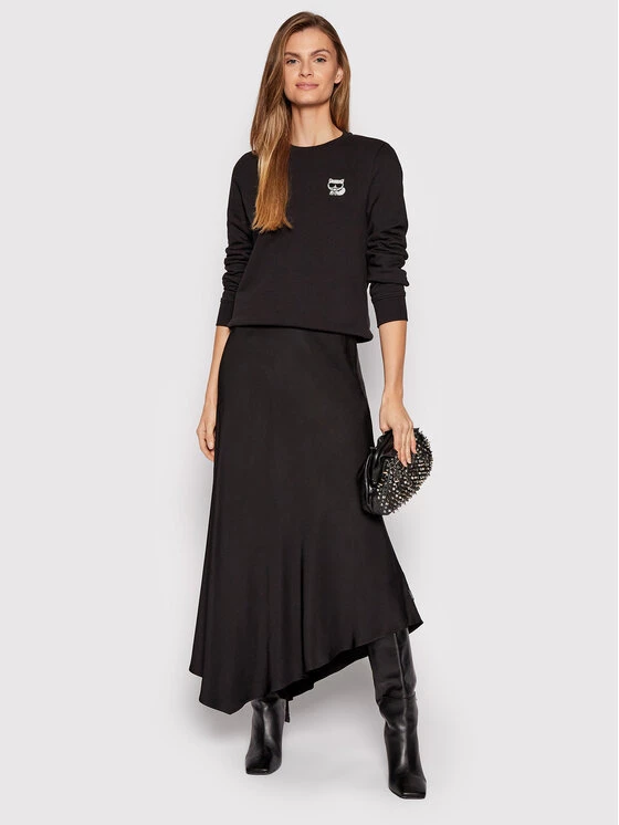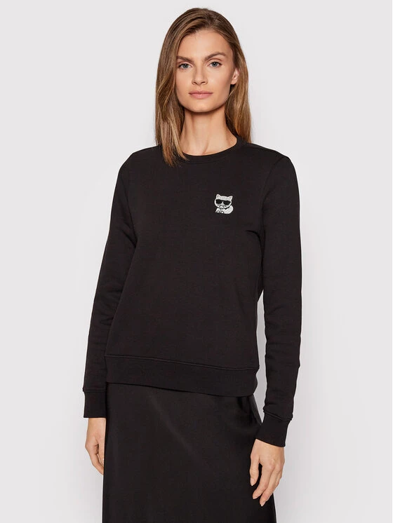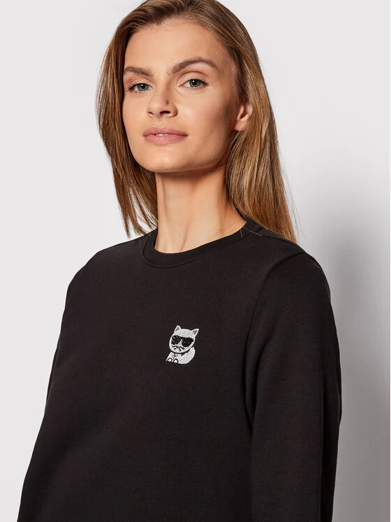 KARL LAGERFELD Γυναίκες Μπλούζες Μπλούζα Ikonik Mini Choupette Rhinestone 216W1830 Μαύρο Regular Fit Μαύρο