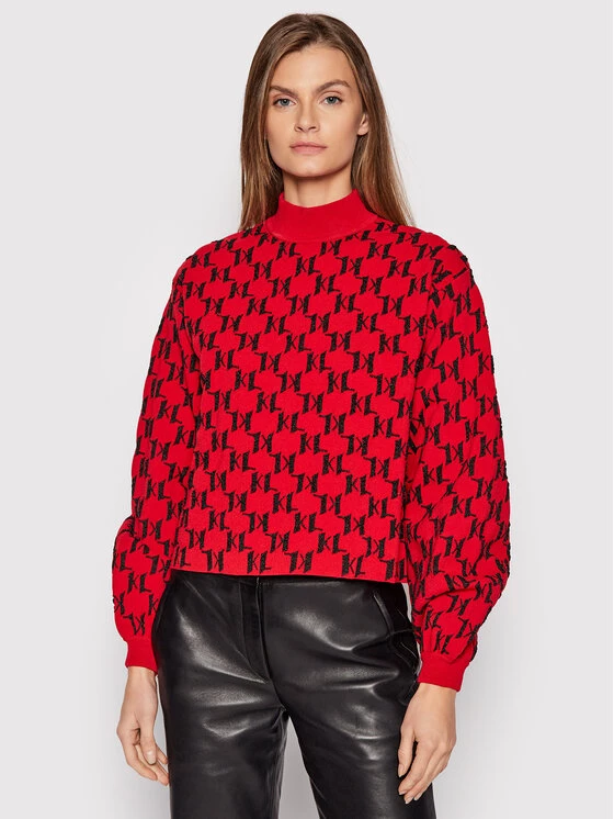 KARL LAGERFELD Γυναίκες Πουλόβερ 3D Monogram 216W2000 Κόκκινο Regular Fit Κόκκινο