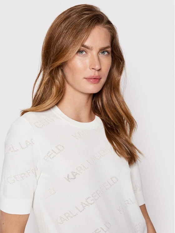 KARL LAGERFELD Γυναίκες Πουλόβερ Pointelle 215W2000 Λευκό Regular Fit Λευκό