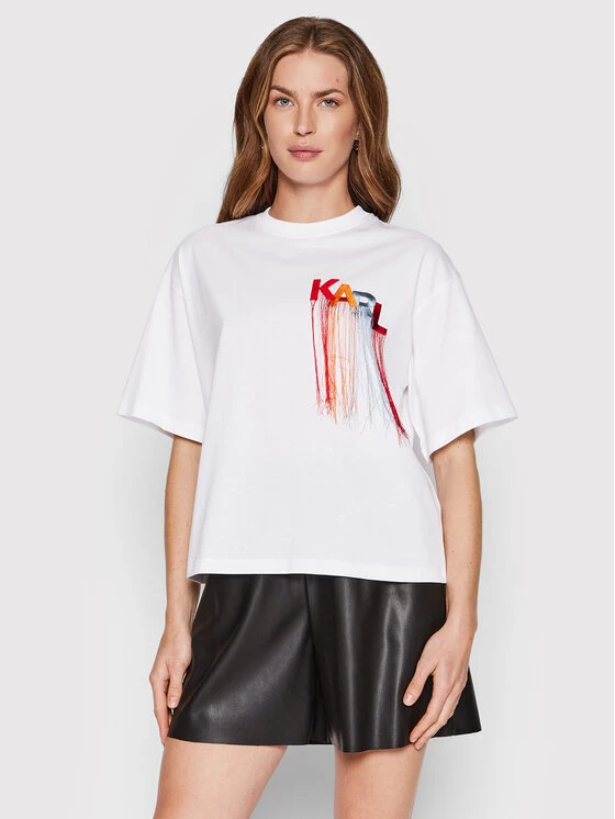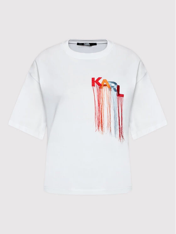KARL LAGERFELD Γυναίκες T-shirts T-Shirt Fringe Logo 221W1707 Λευκό Relaxed Fit Λευκό