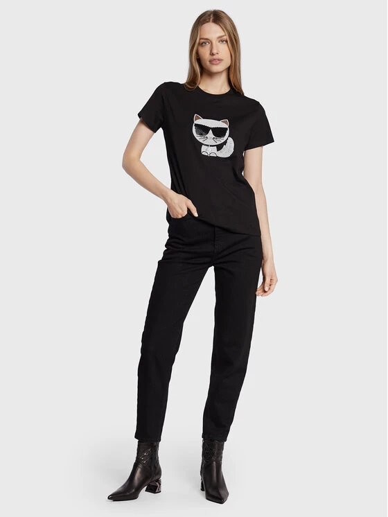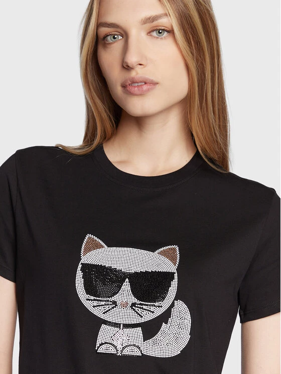KARL LAGERFELD Γυναίκες T-shirts T-Shirt Ikonik Choupette 216W1732 Μαύρο Regular Fit Μαύρο