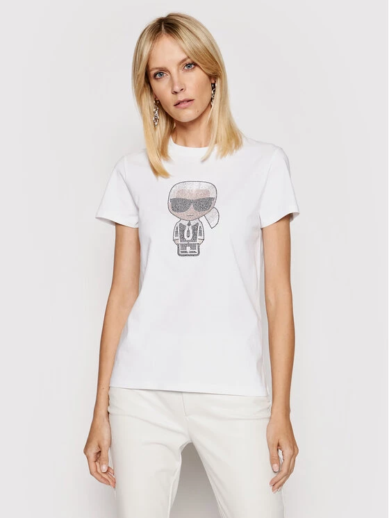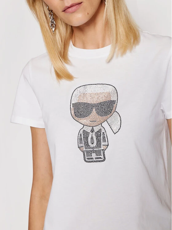 KARL LAGERFELD Γυναίκες T-shirts T-Shirt Ikonik Rhinestone Karl 210W1726 Λευκό Regular Fit Λευκό