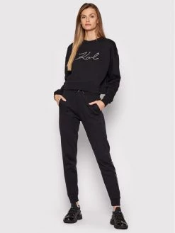 KARL LAGERFELD Γυναίκες Μπλούζες Μπλούζα Ikonik Rhinestones 210W1822 Μαύρο Regular Fit Μαύρο