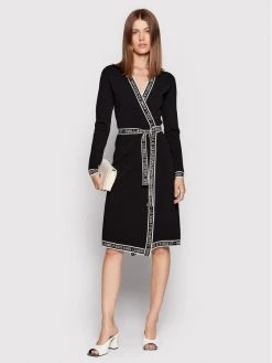 KARL LAGERFELD Γυναίκες Πλεκτά Φορέματα Φόρεμα υφασμάτινο Wrap 215W1330 Μαύρο Regular Fit Μαύρο