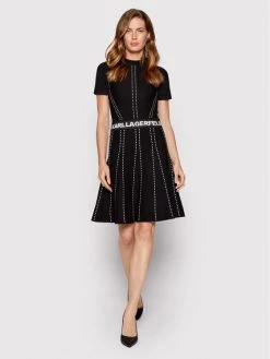 KARL LAGERFELD Γυναίκες Πλεκτά Φορέματα Φόρεμα υφασμάτινο Logo 221W2050 Μαύρο Slim Fit Μαύρο